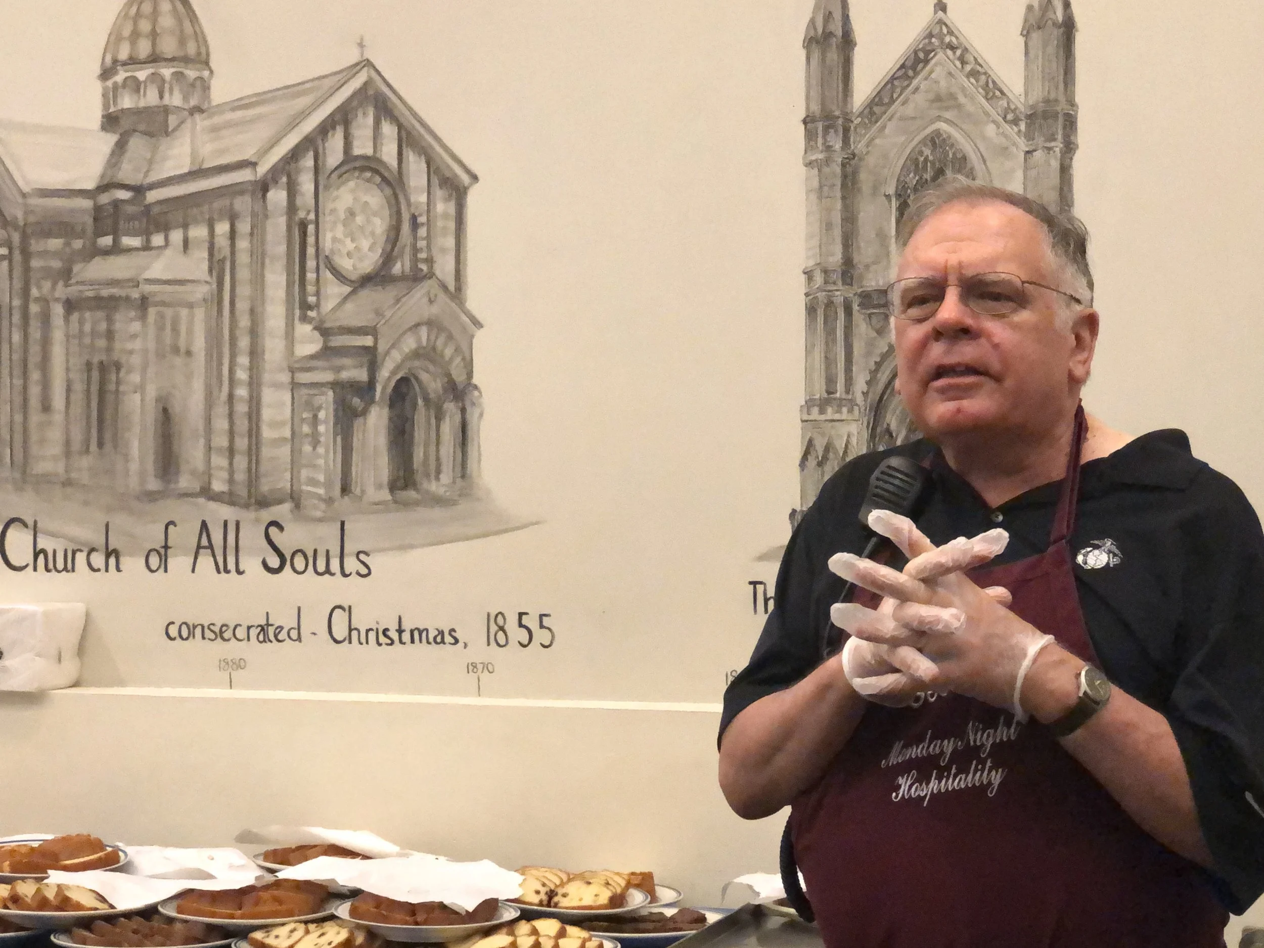 Longtime leader of Monday Night Hospitality will be honored in a memorial service at All Souls Church on April 27th at 2pm. George’s commitment to the program spanned three decades of service to this community. He knew the power of a hot meal and a friendly face who served it. He expanded the social services for our guests and organized medical checkups and flu shots making sure this community was cared for in so many ways. If you would like to make a donation to the program in his honor, please click the link below.